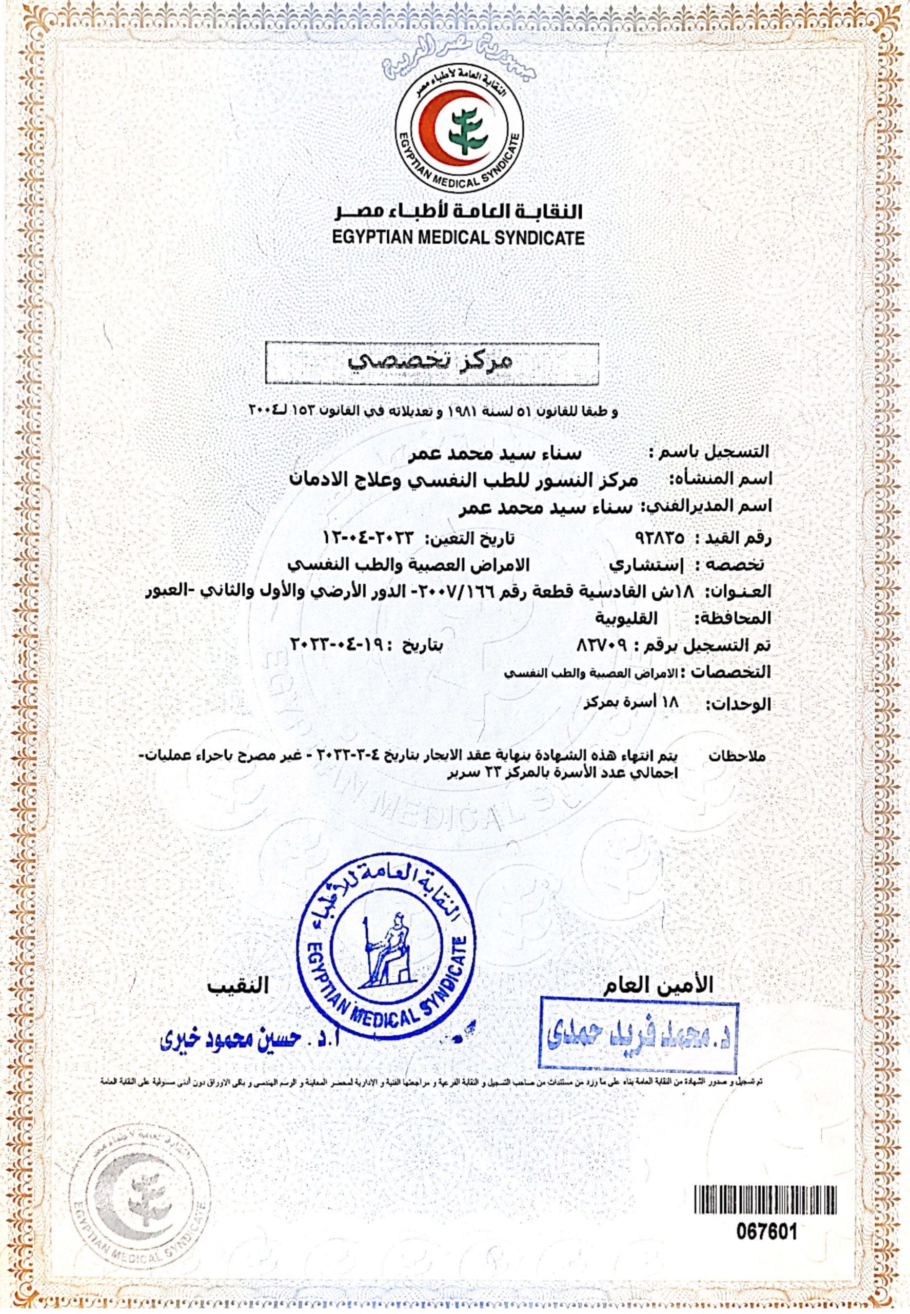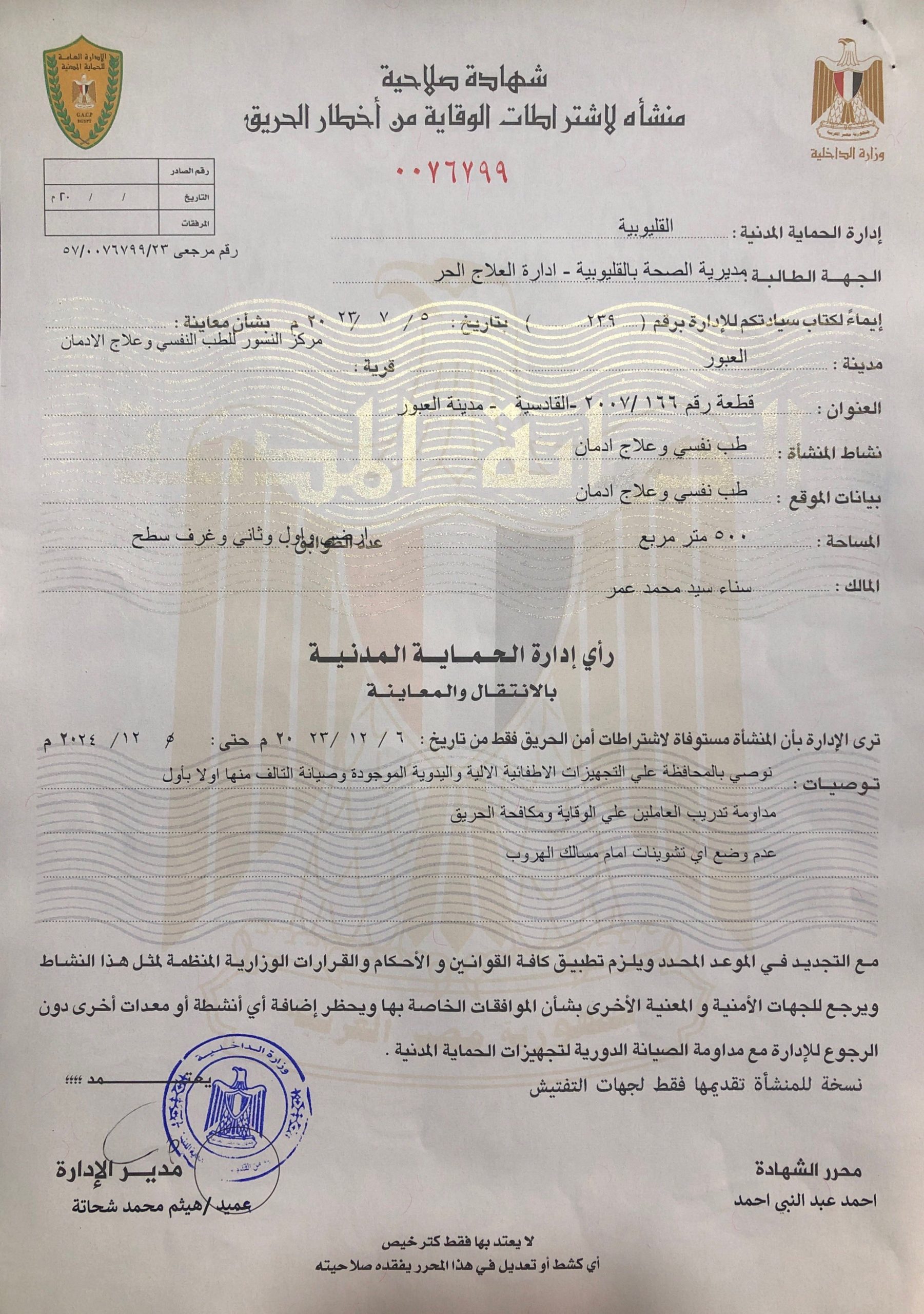 المؤسسة بالكامل مرخصة من وزارة الصحة كما ان العلاج يتم في سرية تامه حفاظاً على خصوصية المريض